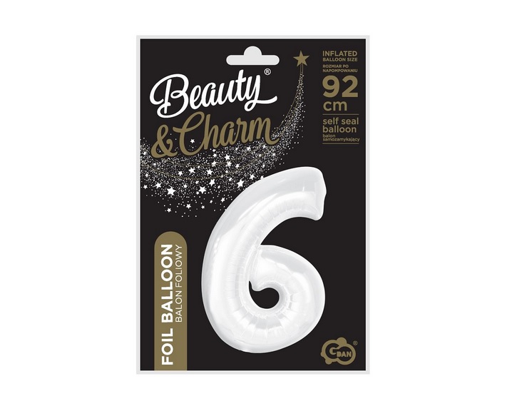 Balon foliowy Cyfra 6 B&C biały 92 cm Godan
