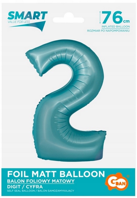 Balon foliowy cyfra ‘2’ jasnoniebieska matowa 76 cm Godan