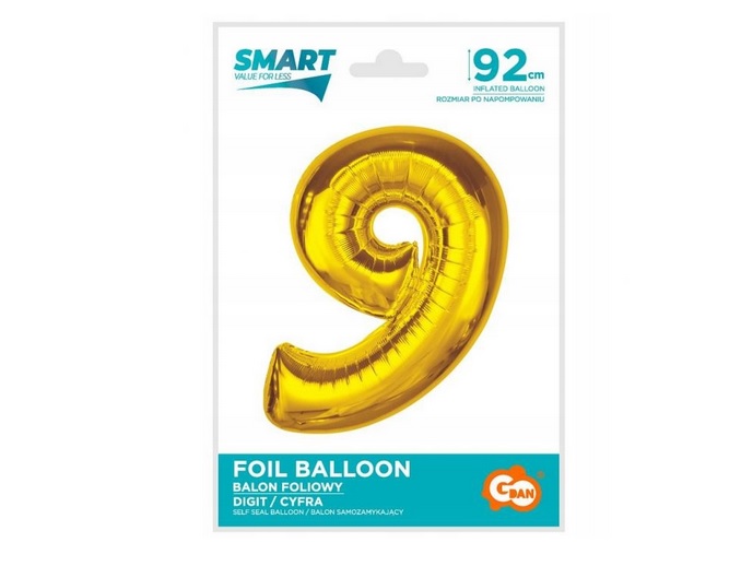 Balon foliowy cyfra „9” złota 92cm CH-S9Z9 Godan