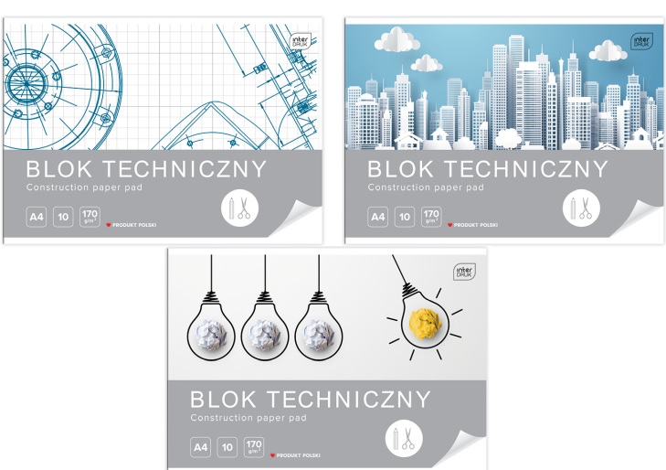 • tył bloku usztywniony tekturą, przód z matową okładką z ciekawymi grafikami