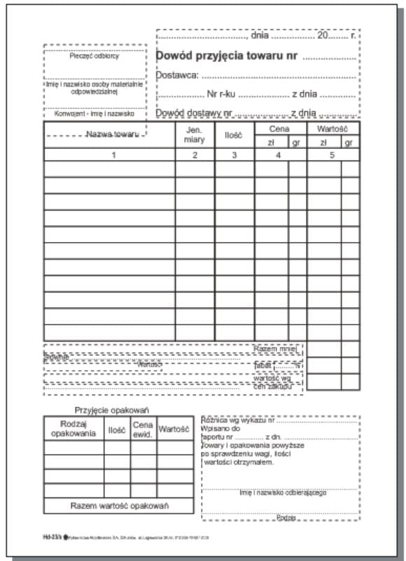 Dowód przyjęcia towaru samokopia HD-23/S