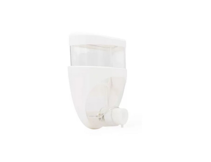 Prosty plastikowy dozownik do mydła o pojemności 650 ml.