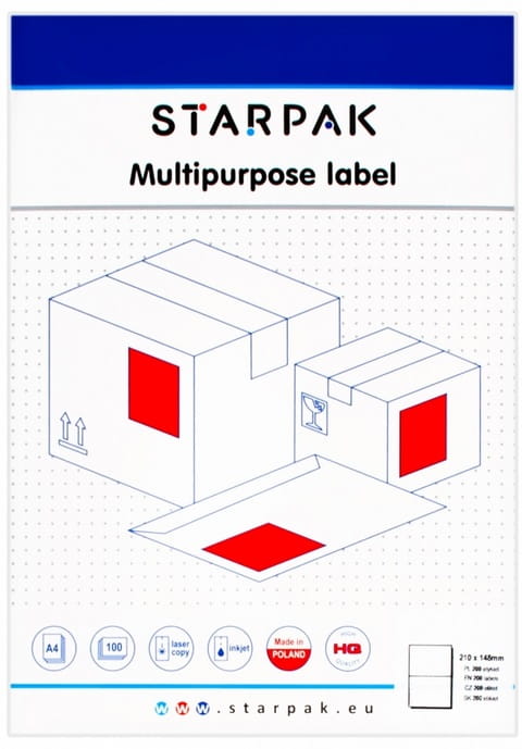 Zalety produktu Białe, samoprzylepne etykiety do urządzeń laserowych oraz atramentowych z kolekcji Starpak przeznaczonej dla biura.