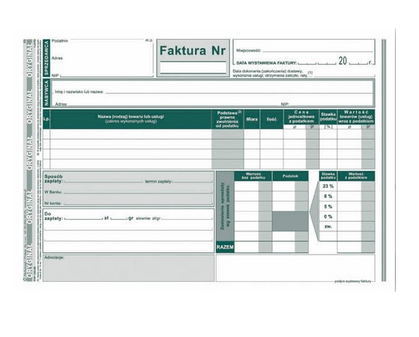 zastosowanie: faktury i inne dokumenty wynikające z przepiów o podatku od towarów i usług