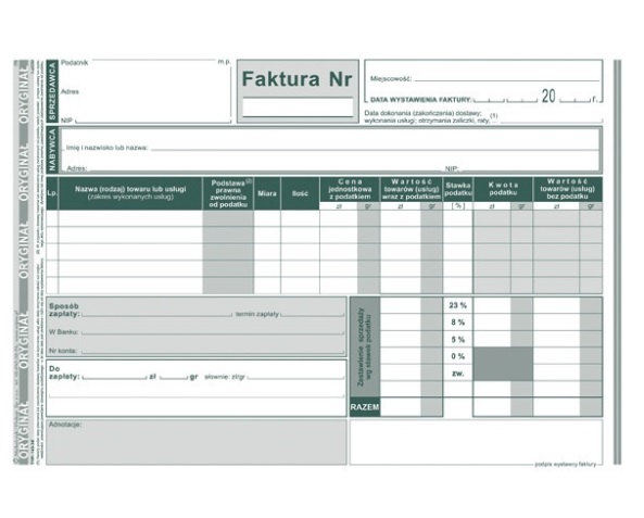 Faktura VAT wzó pełny dla prowadzących sprzedaż w cenach brutto.