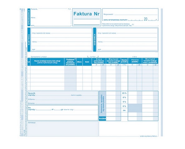 Zastosowanie: Faktury i inne dokumenty wynikające z przepisów o podatku od towarów i usług.