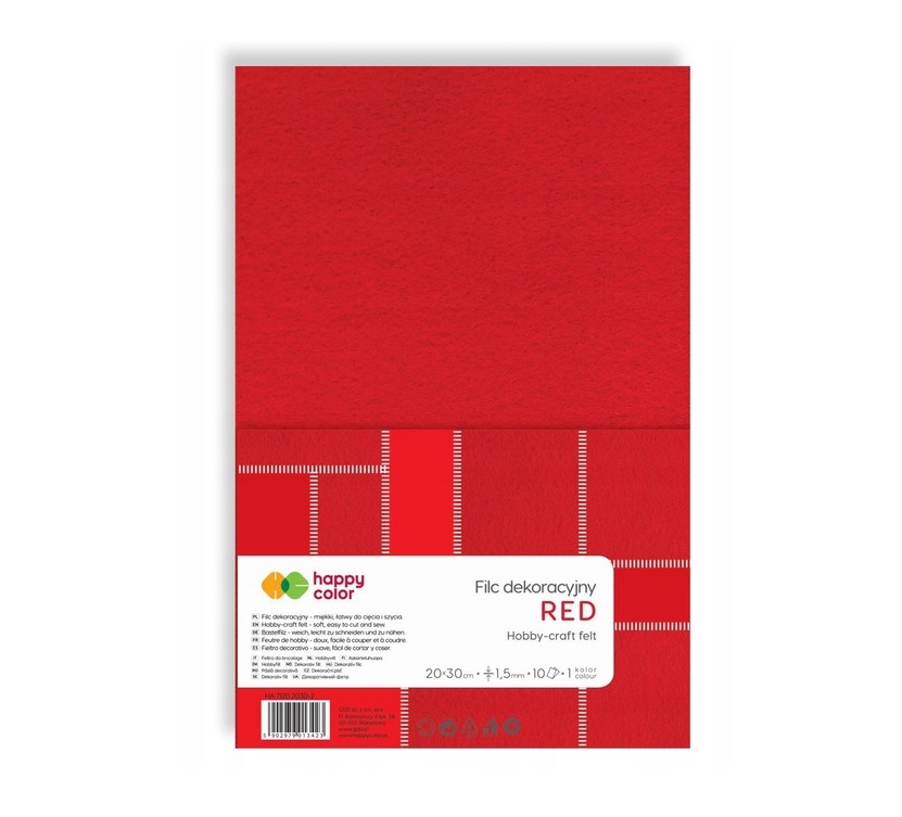 Filc dekoracyjny A4 czerwony 10szt 1,5mm Happy Color