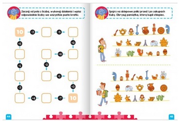 Rozwiązując je, przedszkolak dobrze się bawi, a jednocześnie utrwala znajomość liczb i liter, ćwiczy spostrzegawczość i logiczne myślenie.