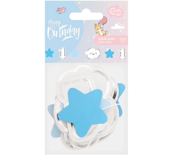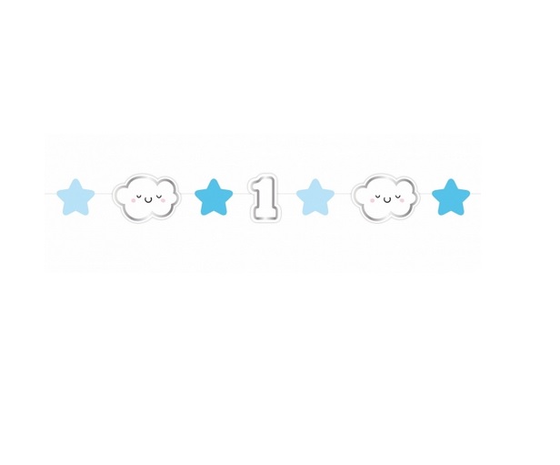 Girlanda składa się gwiazdek, chmurek oraz cyferek "1".