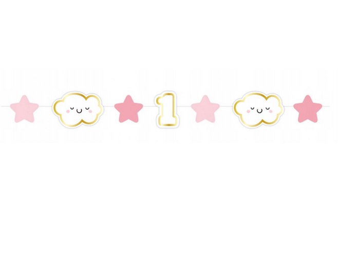 Girlanda składa się gwiazdek, chmurek oraz cyferek "1".