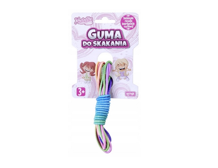 Guma o długości ok. 3 metrów sprawdzi się w grach solo i grupowych, rozwijając koordynację ruchową, koncentrację i sprawność fizyczną.