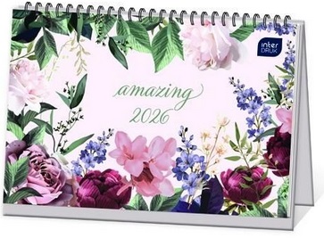 Kalendarz 2026 biurkowy tygodniowy Kwiaty Interdruk_98730
