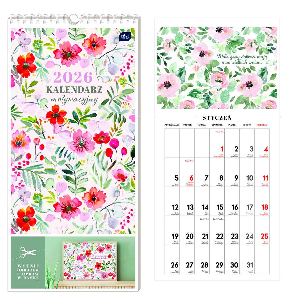 Kalendarz motywacyjny 2026r. 22x46cm Kwiaty Interdruk