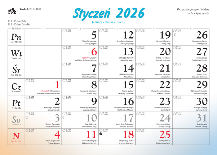 Czytelne kalendarium umożliwia także prowadzenie niewielkich notatek.