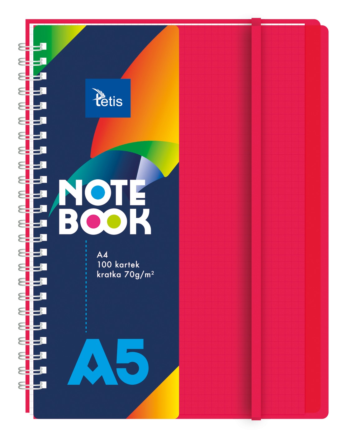 Kołonotatnik A5 100k 70g PP czerwony z gumką Tetis