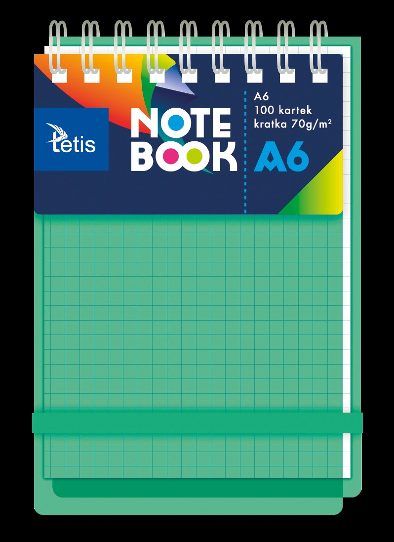 Kołonotatnik A6 100k 70g z gumką zielony PP Tetis_72455