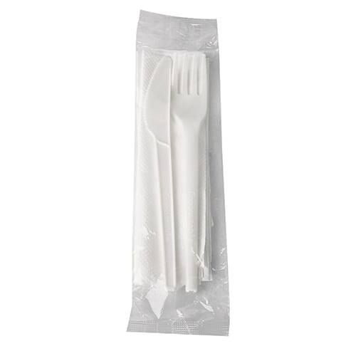 W komplecie znajduje się po jednej sztuce: serwetka, widelec i nóż.
