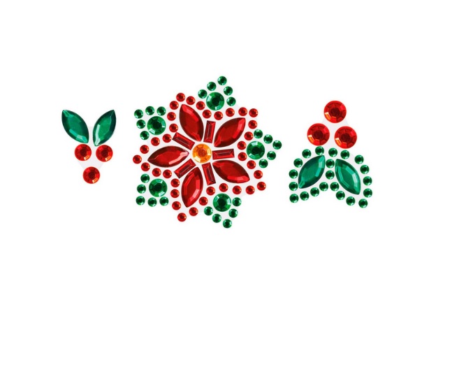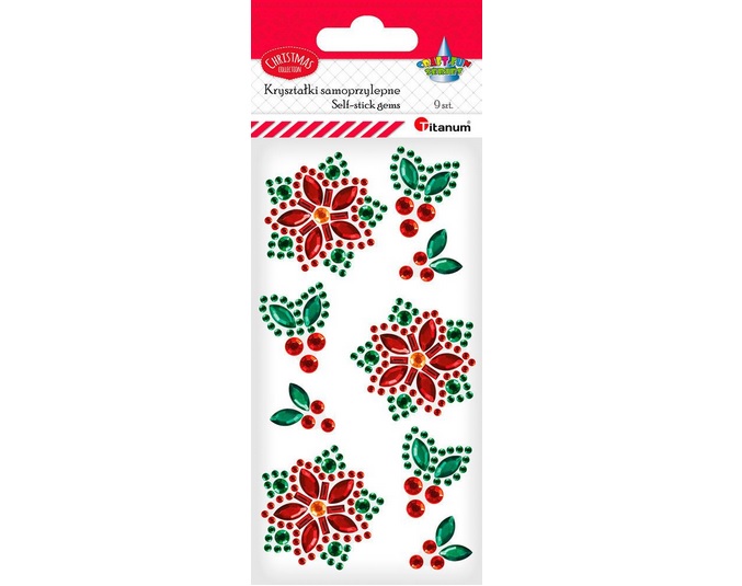 Kryształki samoprzylepne, wzór: poinsecje 35x35mm, ostrokrzewy 13x16/19x25mm
