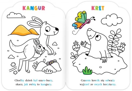 „Malowanki rymowanki” to książka ze starannie narysowanymi wizerunkami sympatycznych zwierzątek i krótkimi oraz zabawnymi wierszykami, zapisanymi z podziałem na kolorowe sylaby.
