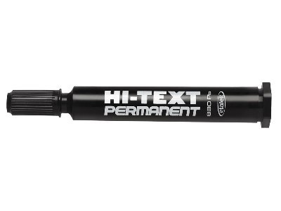 Pisak niezmywalny typu permanent (do wszystkich powierzchni), końcówka okrągła (PB) Ø 4 mm, odporny na światło i wodę, czarny tusz mocno kryjący o zwiększonej zawartości pojemnika do 4g zapewnia długie użytkowanie, heksagonalna podstawka zapobiega samodzielnemu obracaniu sięa, pudełko 12 szt. w jednym kolorze, produkcja: Fibracolor HI-TEXT Włochy