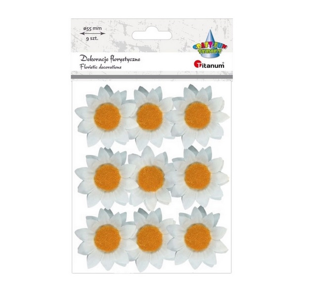 Materiałowe słoneczniki 3D z miejscem na wpicie piku 9szt. Titanum