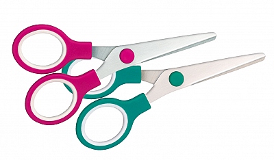 Nożyczki wykonane ze stali nierdzewnej z zaokrąglonymi końcówkami.