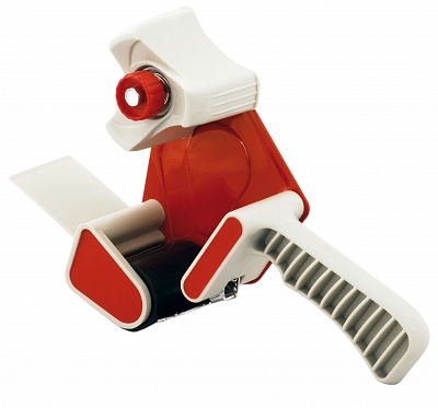 Bardzo pomocna przy oklejaniu kartonów taśmą pakową. Wyposażona w regulację naciągu taśmy oraz hamulec. Posiada sprężynującą prowadnicę i ergonomiczny uchwyt. Cechuje się solidną konstrukcją. Wygodna i poręczna w użyciu.