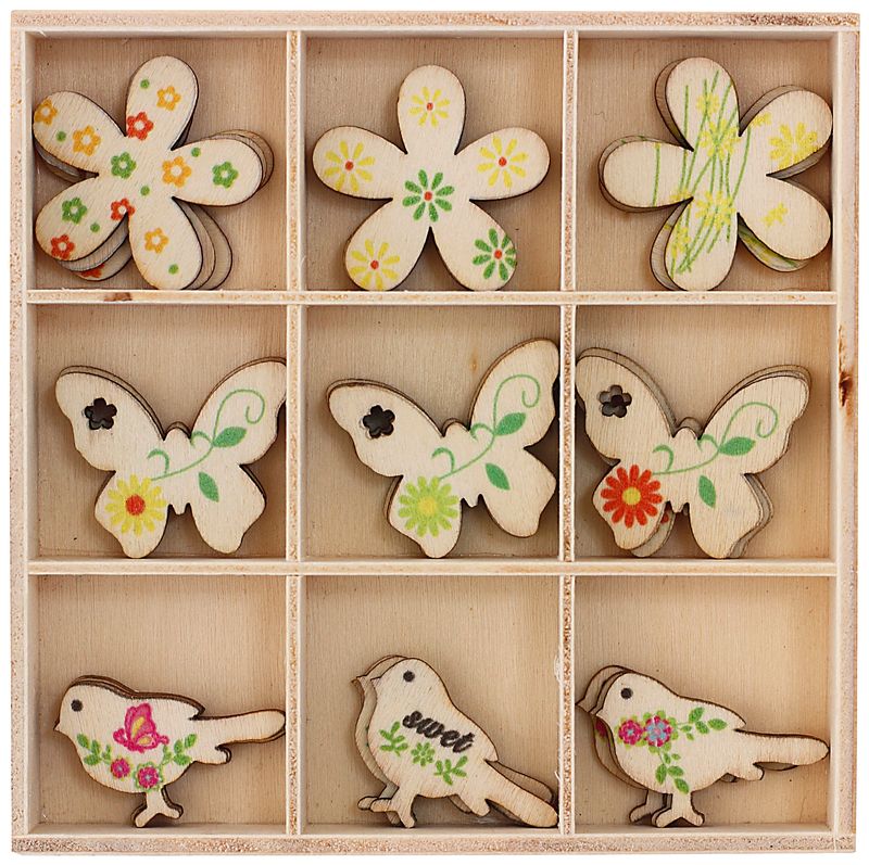 Zestaw drewnianych elementów ozdobnych Ptaki i Motyle marki Galeria Papieru.