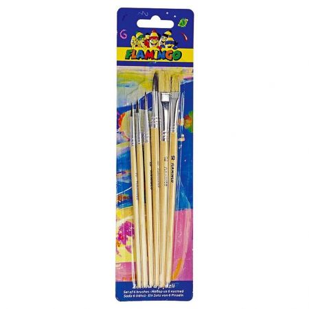 Zestaw zawiera 6 pędzli: 2 płaskie i 4 okrągłe.