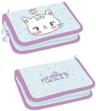Duży piórnik z 2 skrzydełkami i elastycznymi uchwytami na przybory szkolne zapinany na mocny zamek.