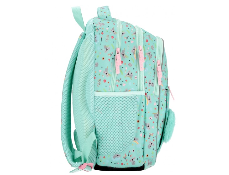 Plecak składa się z 1 dużej komory i 2 obszernych przednich kieszeni, 2 boczne wzmocnione kieszenie siatkowe na butelkę z napojem oraz 1 kieszonka z przodu plecaka.
