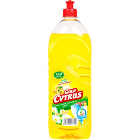 GOLD CYTRUS, to płyn przeznaczony do mycia naczyń kuchennych wykonanych ze szkła, metalu i tworzyw sztucznych. Specjalnie dobrane środki powierzchniowo - czynne zapewniają skuteczne usuwanie zabrudzeń z powierzchni naczyń, jednocześnie nadając im wysoki połysk, bez smug i zacieków. Doskonale się pieni. Gęsta formuła płynu pozwala na jego ekonomiczne wykorzystanie. Zawarta w płynie gliceryna chroni, nawilża i natłuszcza skórę rąk.