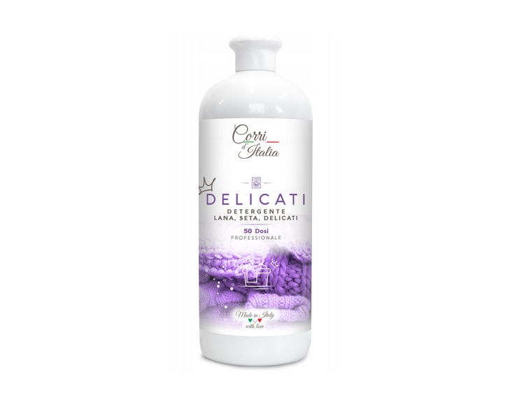 Formuła płynu do prania Corri d’Italia Delicati oparta na sile multienzymów eliminuje molekuły nieprzyjemnego zapachu i chroni strukturę ubrań, nadając im świeży zapach.