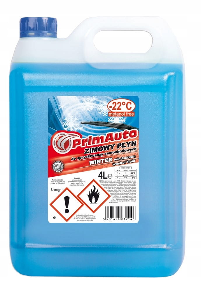 PrimAuto to niezawodny i nowoczesny płyn, który przeznaczony jest do mycia i spryskiwania szyb samochodowych oraz reflektorów w okresie zimowym. Specjalnie dobrane składniki powodują to, iż nie ulega on zamarznięciu aż do temperatury -22*C.