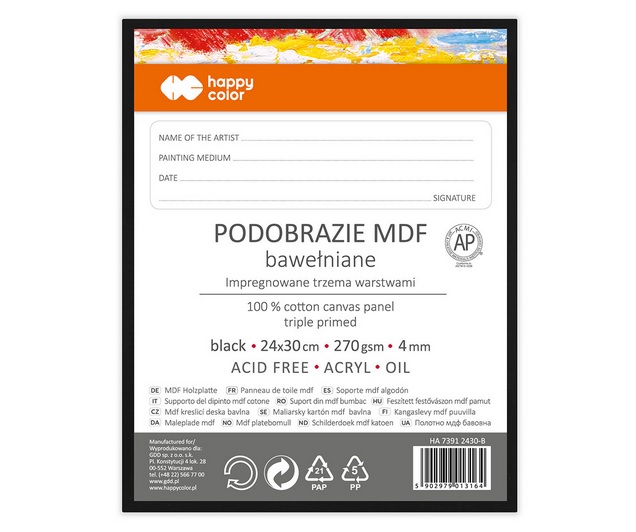 Podobrazia bawełniane MDF czarne 24x30cm 270g Happy Color