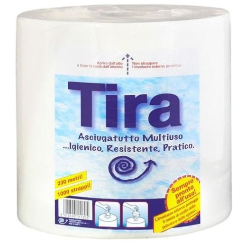 Ręcznik rolka Tira Jumbo - Kolor:biały - Surowiec:100% celuloza - Gramatura [g/m2]:21 - Ilość warstw:2 - Średnica zewn. rolki [cm]:24 - Wysokość rolki [cm]:24 - Ilość listków:1000 - Długość rolki [m]:230 - Waga rolki [kg]:2,250