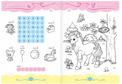 „Słodkie kucyki. Aktywizująca książeczka dla dziewczynek” to zbiór zajmujących łamigłówek oraz kolorowanek do ciekawego spędzania czasu i rozwijania wielu przydatnych umiejętności.