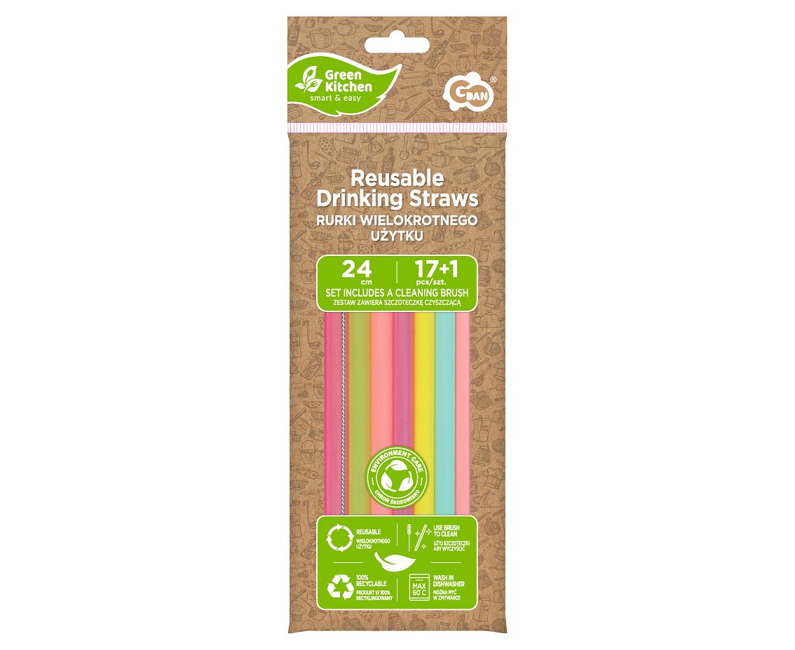Słomki do napojów 17szt 24cm wielokrotnego użytku + szczoteczka Godan