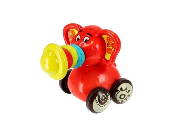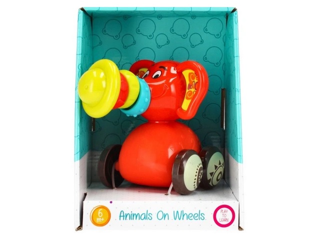 Kolorowy słonik porusza się na kółkach za pomocą popchnięcia, co aktywizuje rozwój motoryczny i fizyczny dziecka, wyrabiając zmysł równowagi i koordynację.