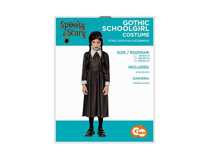 Strój Gotyckiej Uczennicy inspirowany kultowym stylem Wednesday to doskonały wybór na Halloween, bale przebierańców czy tematyczne imprezy.