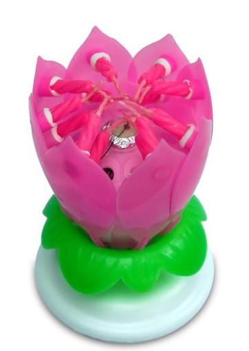 Po dotknięciu czerwonego punktu w środku kwiatu (tlącą się specjalną zapałką dołączoną do opakowania) wystrzeli fontanna iskier, która podpali świeczki.