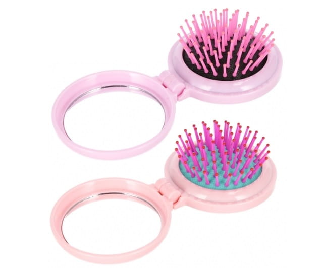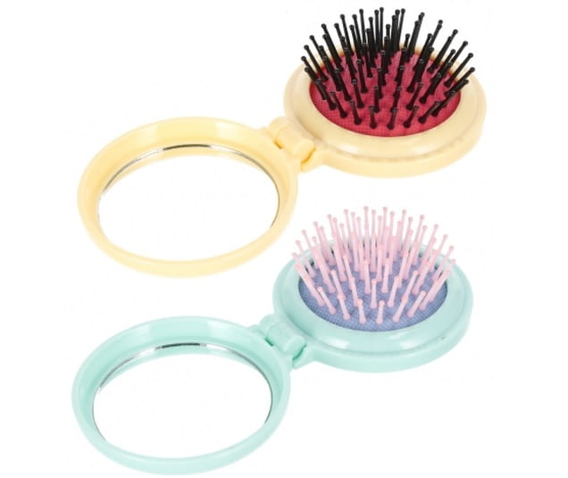 Szczotka z kolorową grafiką i lusterkiem w jednym, występuje w pięciu kolorach.