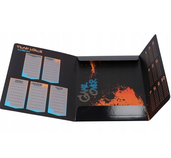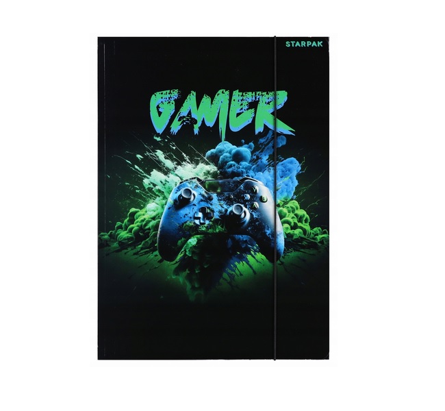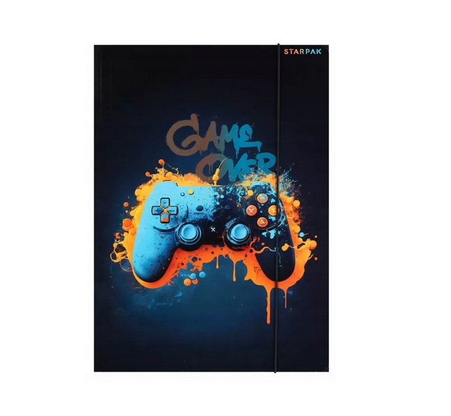 Praktyczna i stylowa teczka z gumką z grafiką pada do gry to idealne rozwiązanie do przechowywania dokumentów, prac plastycznych i szkolnych materiałów.