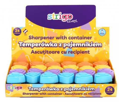 Temperówka do kredek i ołówków na jedną grubość z pojemnikiem Strigo_84437