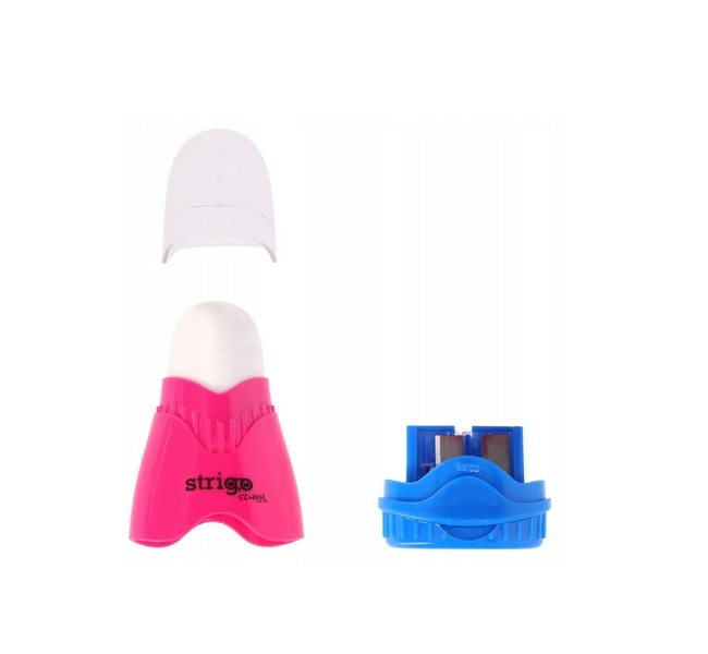 Temperówka podwójna z pojemnikiem oraz gumką Strigo