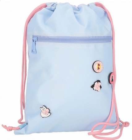 Worek posiada zestaw sznurków, dzięki którym można go nosić w ręku, na ramieniu lub jako plecak, dodatkowo posiada kieszeń z przodu zamykaną na zamek błyskawiczny oraz wytrzymały i odporny na zabrudzenia materiał.