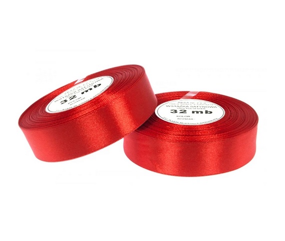 Wstążka satynowa 25mm x 32mb Czerwona 8031 Aksa