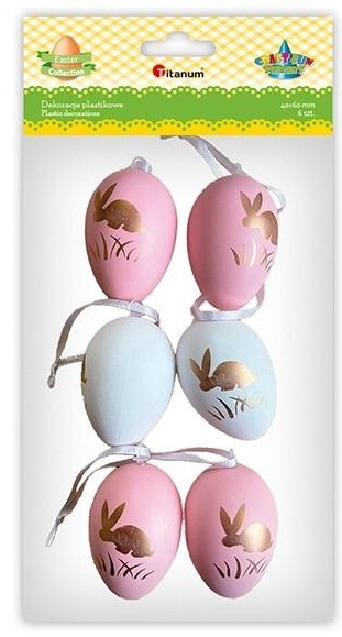 Zawieszki plastikowe jajka 40x60mm różowe 6szt Titanum