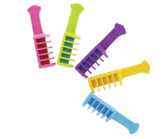 Zawiera 5 grzebieni koloryzujących włosy, grzebień w kolorze: różowym, zielonym, fioletowym, niebieskim, żółtym.