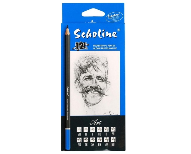 Profesjonalny zestaw ołówków do szkicowania technicznego, składający się z 12 sztuk ołówków o różnym stopniu twardości - od 8B do 2H.